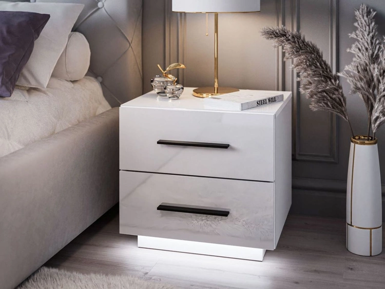 Stolik nocny z dwoma szufladami Nuveo Lux Biały Połysk