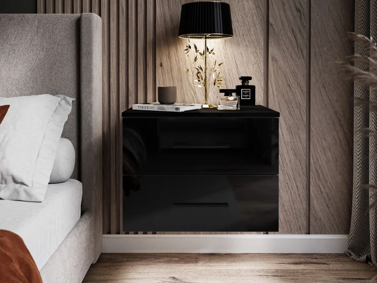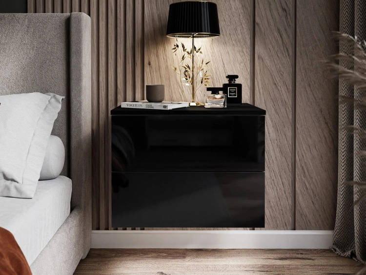 Podwieszany stolik nocny z dwoma szufladami Nuveo Czarny połysk