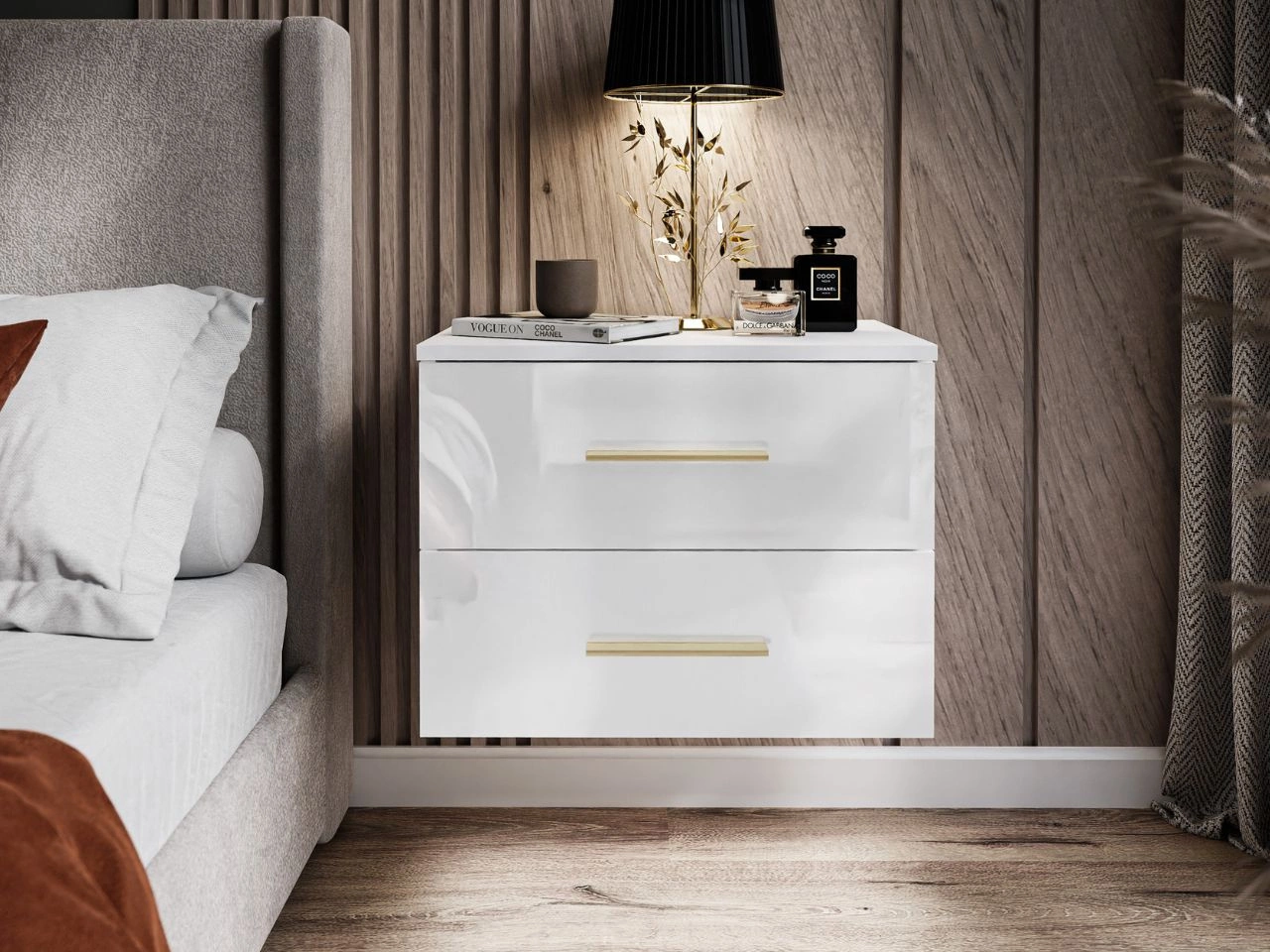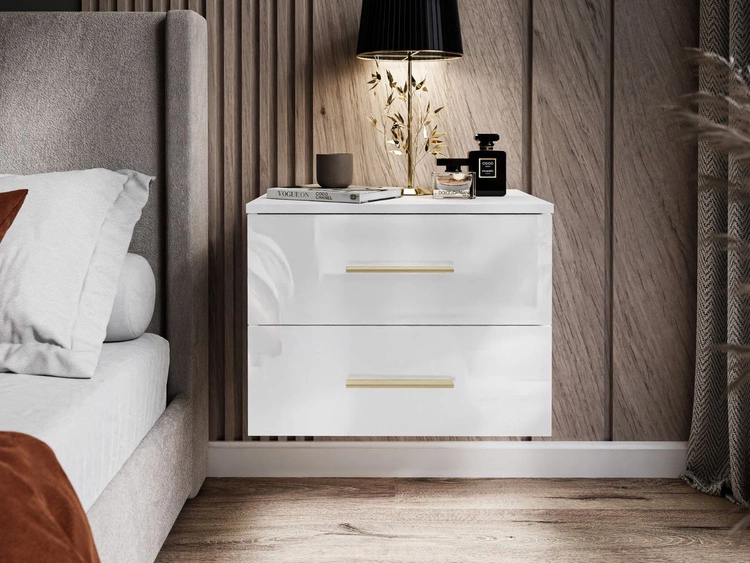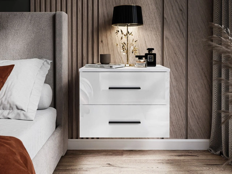 Podwieszany stolik nocny z dwoma szufladami Nuveo Lux Biały połysk