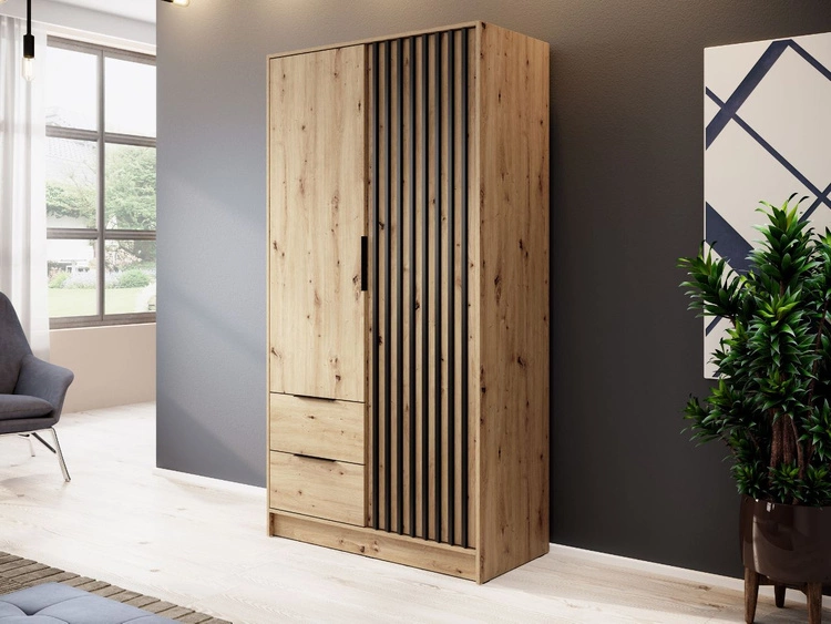 Ilość produktów: 235Szafa dwudrzwiowa z drzwiami uchylnymi 105 cm Macron Dąb Artisan z lamelami