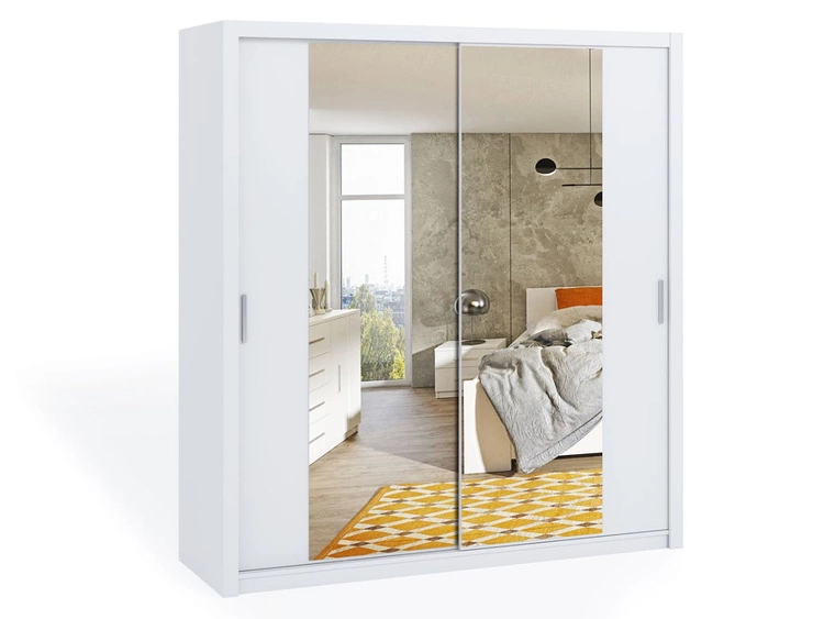 Szafa przesuwna z lustrem 150 cm z oświetleniem LED Portel Biała