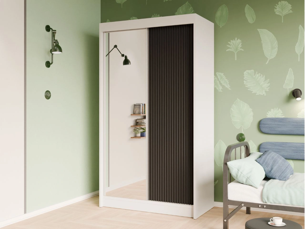 Ilość produktów: 177Szafa przesuwna z ryflowanym frontem i lustrem 120 cm Fano Biała, Czarna