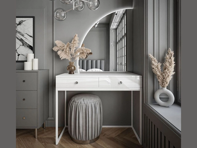 Toaletka glamour z lustrem, szufladami i oświetleniem LED Melo biały połysk