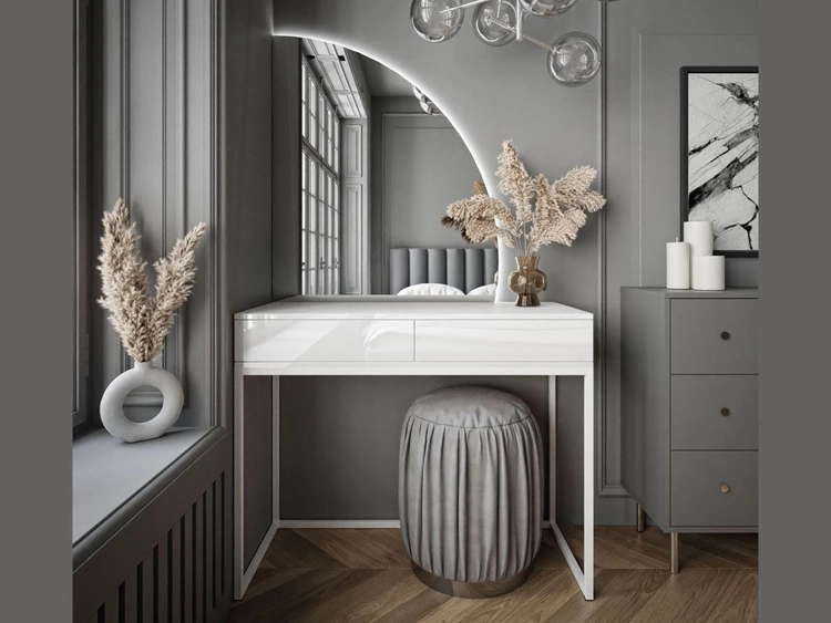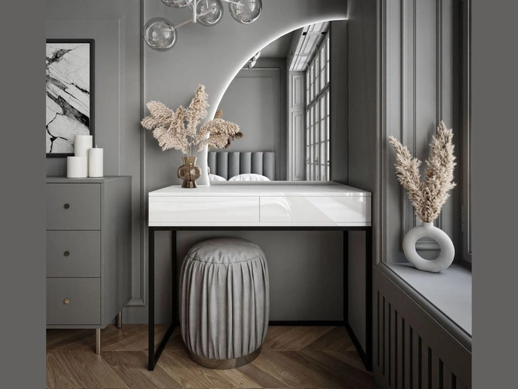 Toaletka glamour z lustrem, szufladami i oświetleniem LED Melo biały połysk