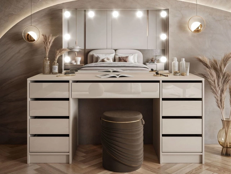 Toaletka szeroka z lustrem, szufladami i oświetleniem LED Melo Elite kaszmir połysk