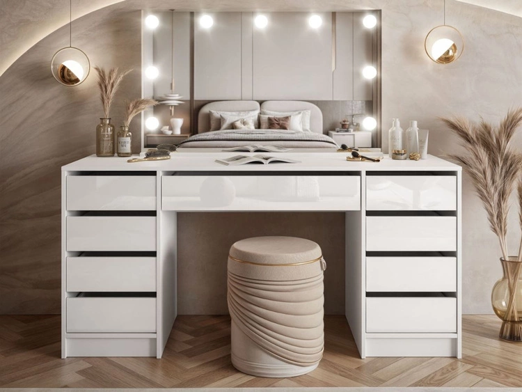 Ilość produktów: 92Toaletka szeroka z lustrem, szufladami i oświetleniem LED Melo Elite biały połysk