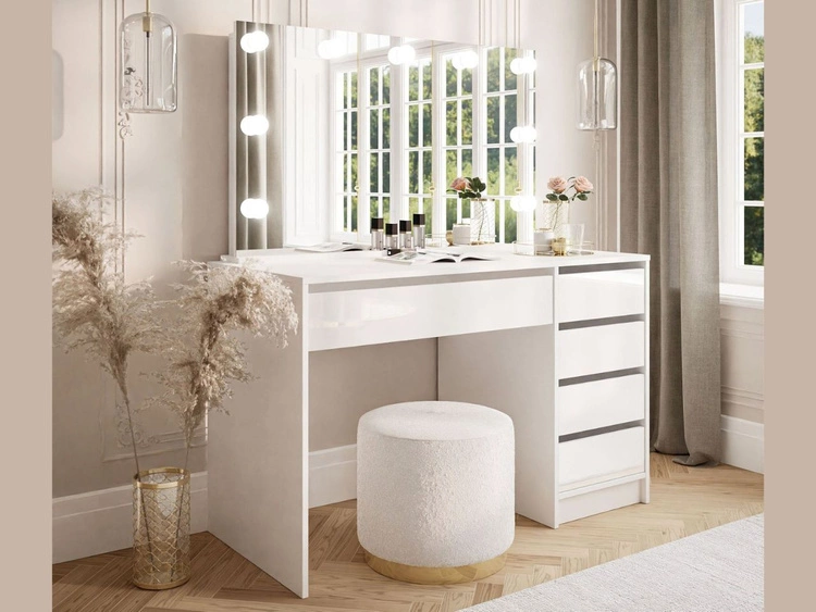 Toaletka z lustrem, szufladami i oświetleniem LED Melo Elite biały połysk