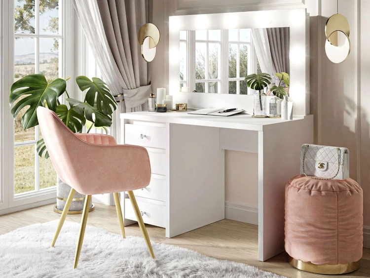 Toaletka kosmetyczna z szufladami, lustrem i oświetleniem LED Olivine biały połysk