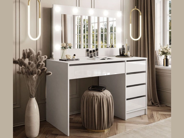 Toaletka glamour z lustrem, szufladami i oświetleniem LED Melo biały połysk