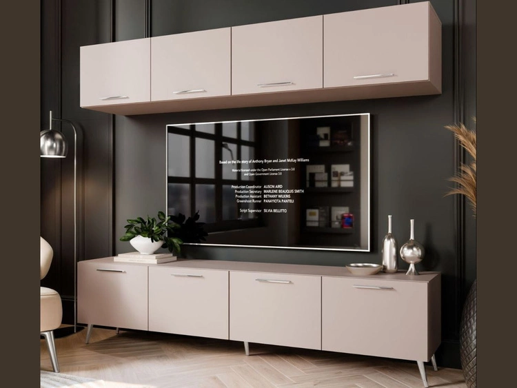 Meblościanka do salonu z oświetleniem LED na złotych nogach Noaé Czarny połysk