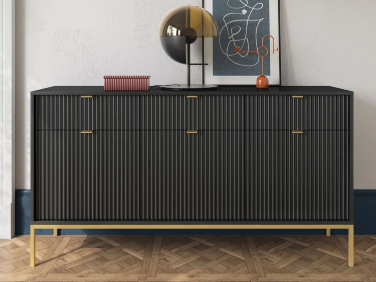 Komoda z drzwiami i szufladami Amber czarna na złotych nogach