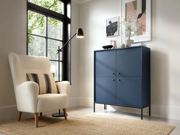 Komoda z drzwiami na czarnych nóżkach Amor Granatowa