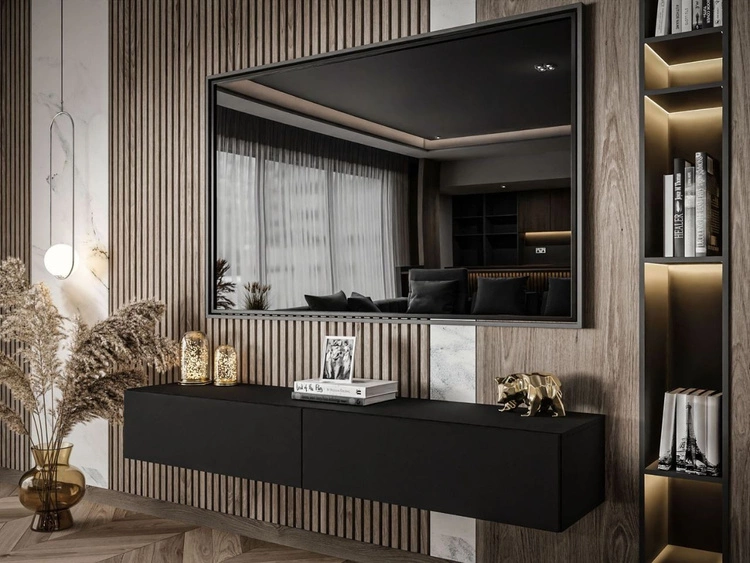 Szafka RTV dwudrzwiowa wisząca 175 cm z oświetleniem LED Sorelle czarny mat