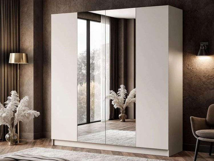 Szafa czterodrzwiowa z drzwiami uchylnymi, szufladami i lustrami Ameli Kaszmir