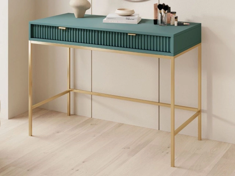 Toaletka ze złotymi metalowymi nogami Amber zielona