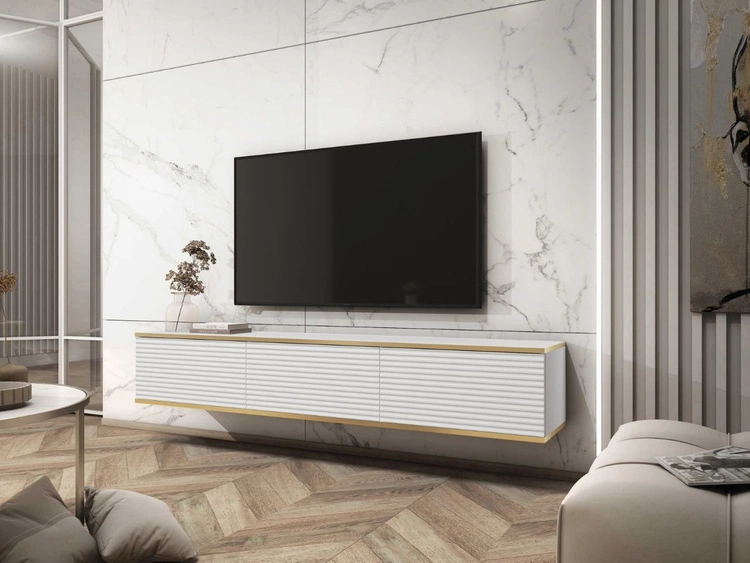 Szafka wisząca pod telewizor drzwiczkami z ryflowanym frontem 175 cm Diolo Biała