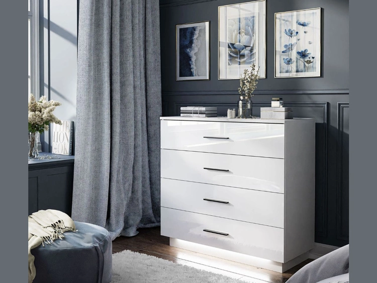 Ilość produktów: 1421Komoda z czterema szufladami i oświetleniem LED Nuveo Biały połysk