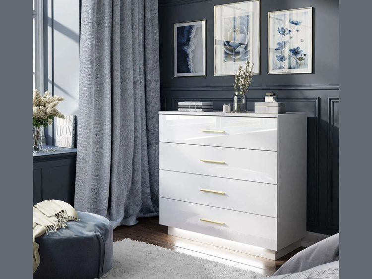 Komoda z czterema szufladami i oświetleniem LED Nuveo Biały połysk