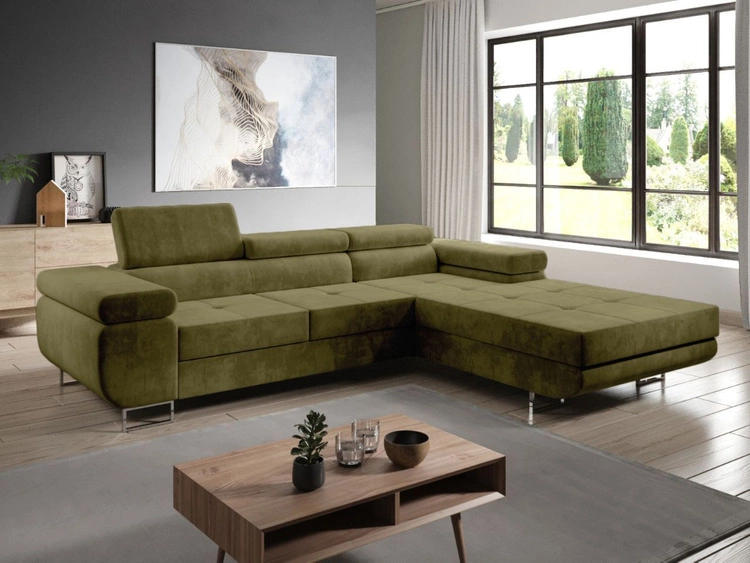 Ilość produktów: 1421Narożnik L prawy z funkcją spania i pojemnikiem Solam Zielony