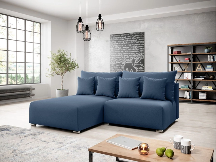 Narożnik L Lewy z funkcją spania i pojemnikiem Ronni Ciemny niebieski