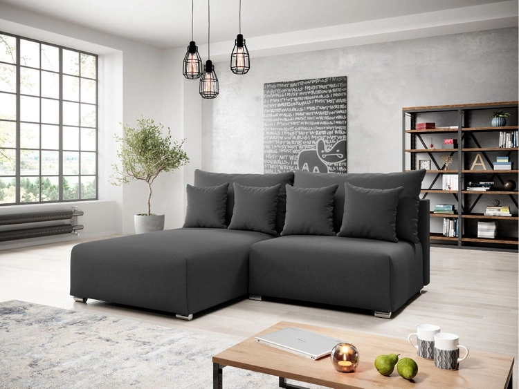 Narożnik L Lewy z funkcją spania i pojemnikiem Ronni Ciemny szary