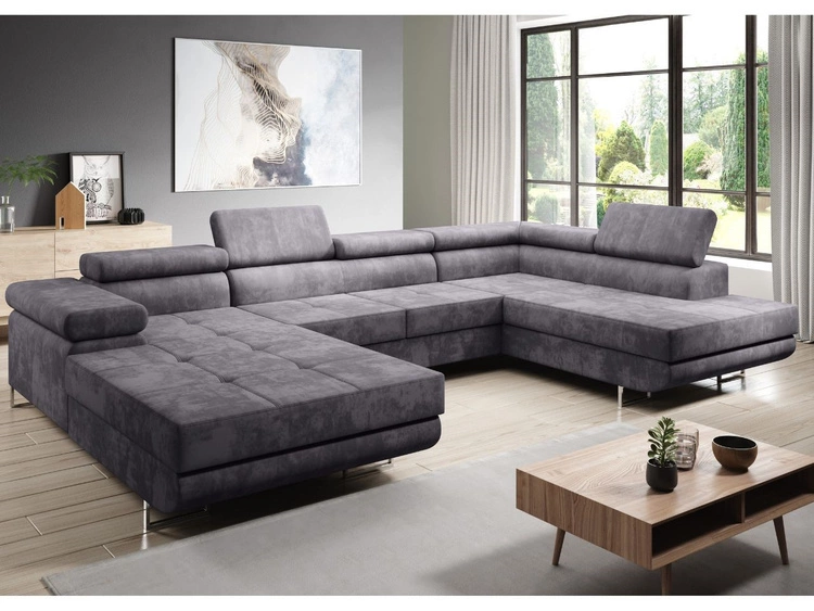 Narożnik U prawy z funkcją spania i pojemnikiem Solam U Szary