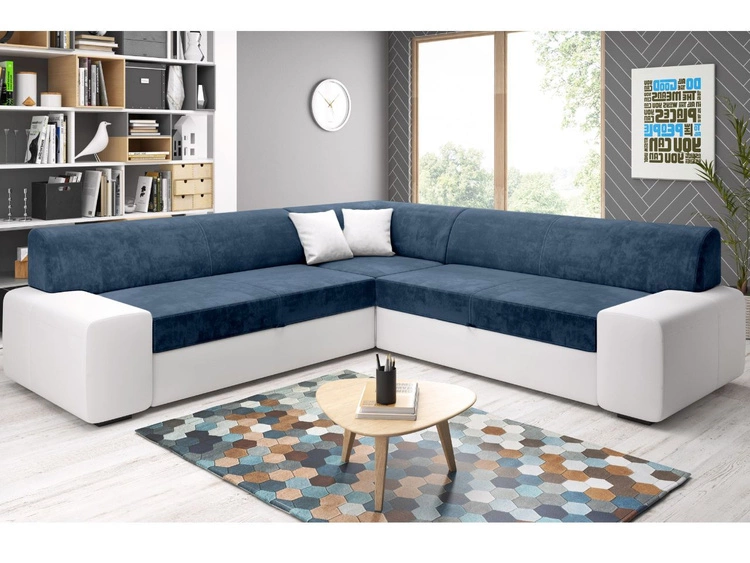 Narożnik L Lewy z funkcją spania i pojemnikiem Fresto Maxi Ciemny niebieski, Biały
