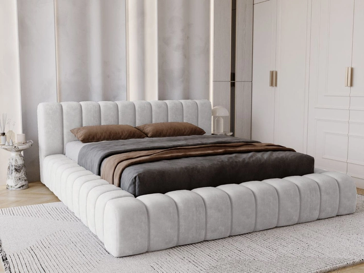 Łóżko kontynentalne z pojemnikiem na pościel 200x200 Alicante w tkaninie bouclé Szare