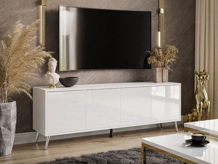 Szafka RTV pod telewizor z drzwiczkami na srebrnych nogach Vivance Biały połysk