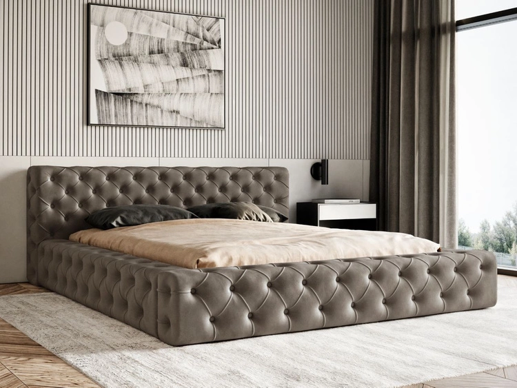 Łóżko tapicerowane z pojemnikiem i stelażem 140x200 cm Bubble Szare