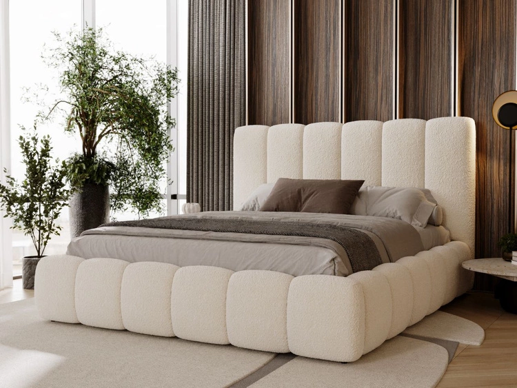Łóżko kontynentalne z pojemnikiem na pościel 160x200 Alicante w tkaninie bouclé Beżowe