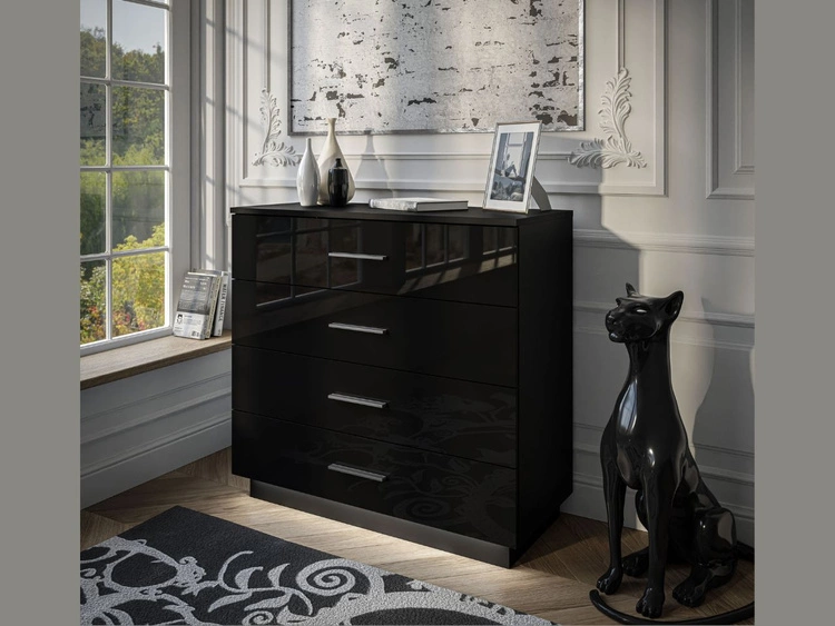 Komoda z czterema szufladami i oświetleniem LED na czarnych nóżkach Nuveo Czarny połysk