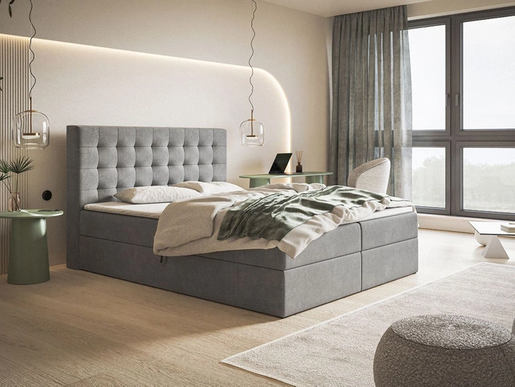 Łóżko kontynentalne z pojemnikiem na pościel 180x200 Kate Szare