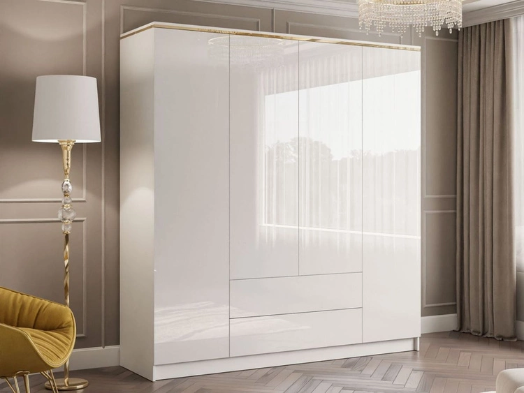 Szafka RTV pod telewizor z drzwiczkami na złotych nóżkach 200 cm Noaé Biały Połysk