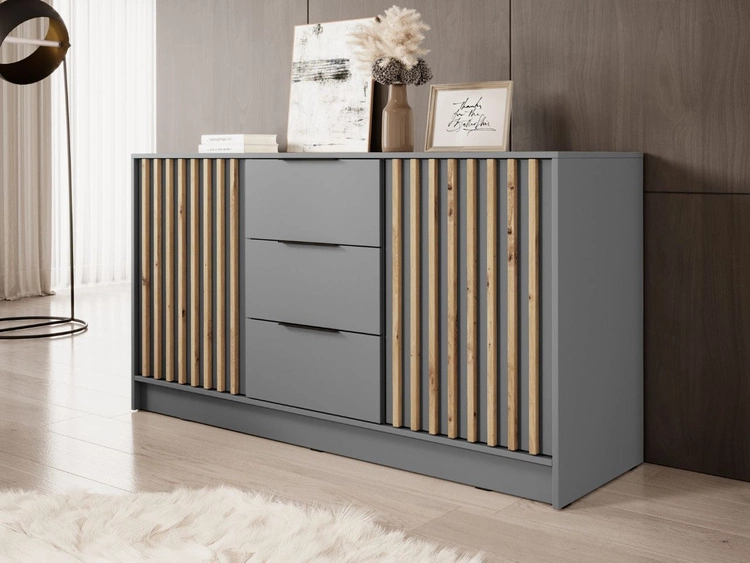 Komoda z drzwiami i szufladami 155 cm Macron Szara z lamelami