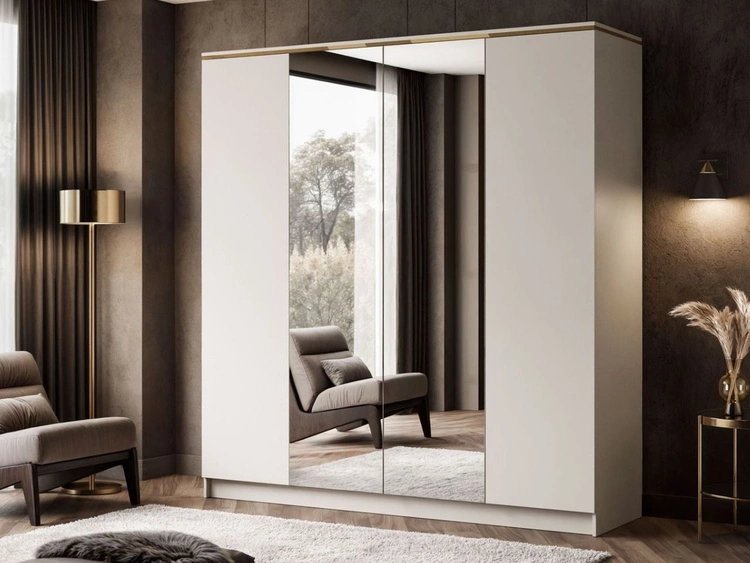 Toaletka prawostronna z szufladami, lustrem i oświetleniem LED na złotych nóżkach Evare Kaszmir