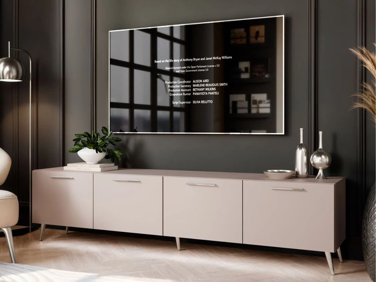 Szafka RTV pod telewizor z drzwiczkami na srebrnych nóżkach 200 cm Noaé Kaszmir