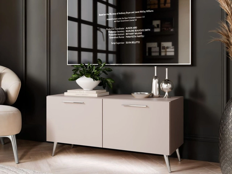 Szafka RTV pod telewizor z drzwiczkami na srebrnych nóżkach 100 cm Nodoo Kaszmir