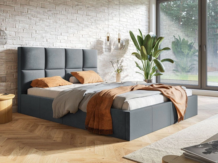 Łóżko tapicerowane z pojemnikiem i stelażem 140x200 Marad szare