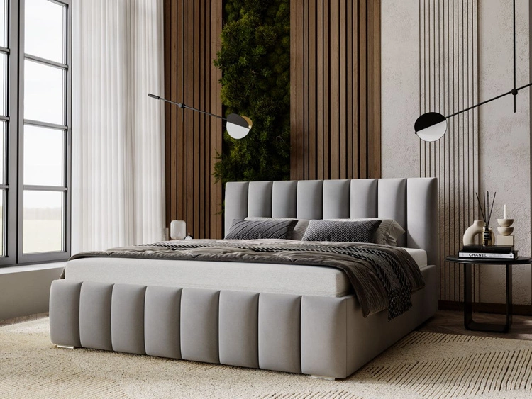Łóżko tapicerowane z pojemnikiem i stelażem 160x200 Valencia Jasny szary