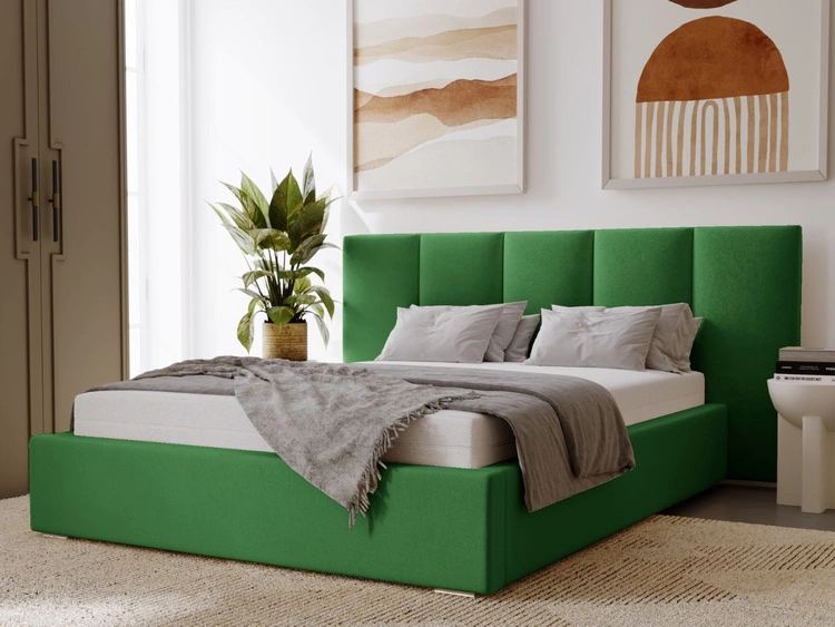 Łóżko tapicerowane z pojemnikiem i stelażem 140x200 cm Lizbona Zielone
