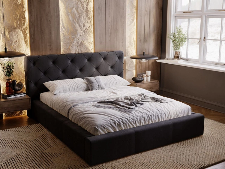 Łóżko tapicerowane z pojemnikiem i stelażem 160x200 Twist Czarny