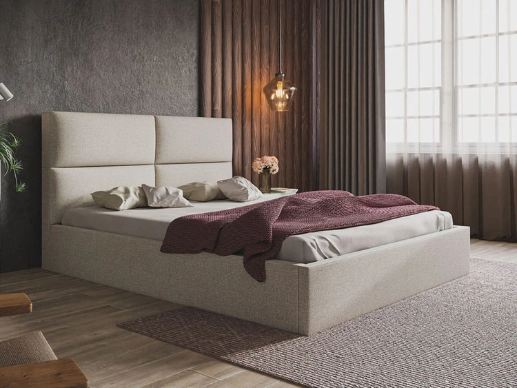 Łóżko tapicerowane z pojemnikiem i stelażem 160x200 Sesto beżowe