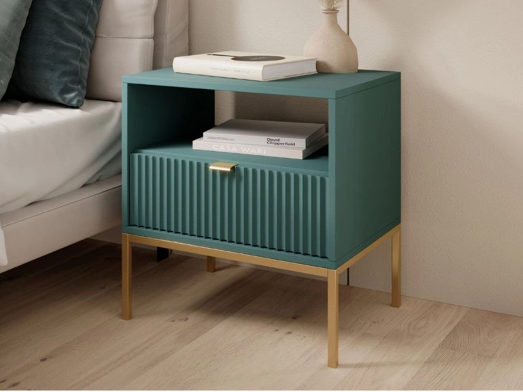 Stolik nocny z szufladą Amber zielony na złotych nogach