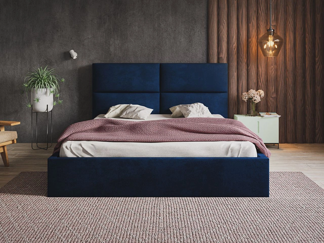 Łóżko tapicerowane z pojemnikiem i stelażem 180x200 Marad granatowe