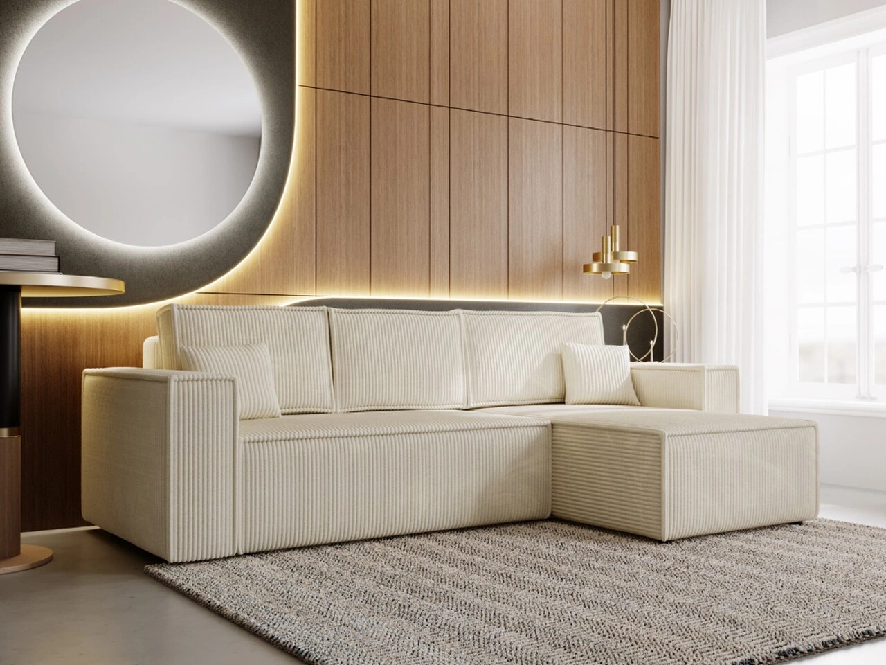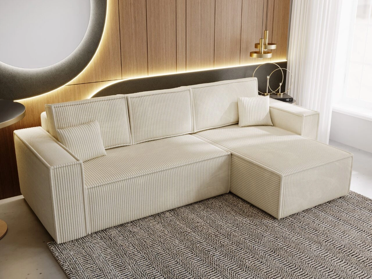 Narożnik L prawy z funkcją spania i pojemnikiem Prato XL Beżowy