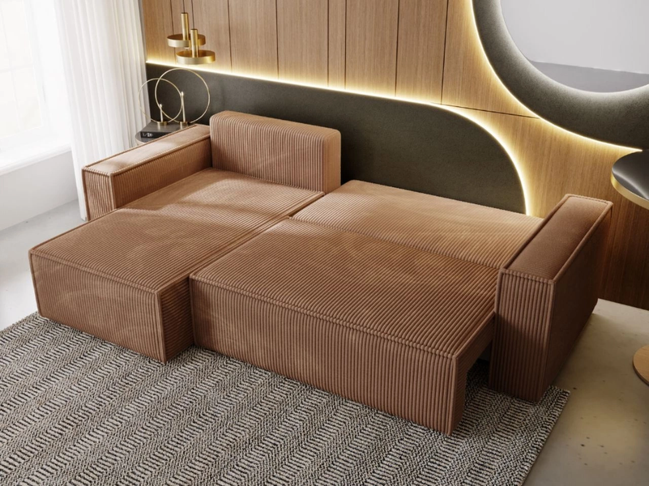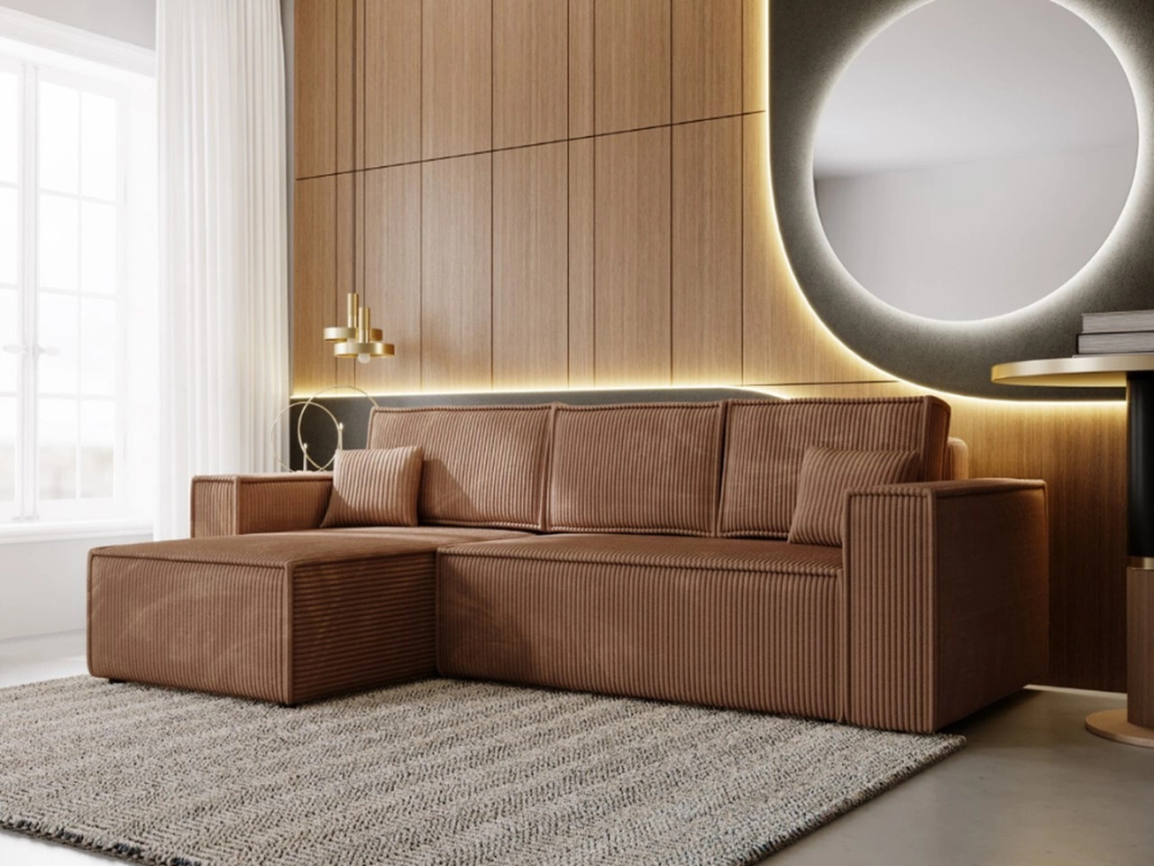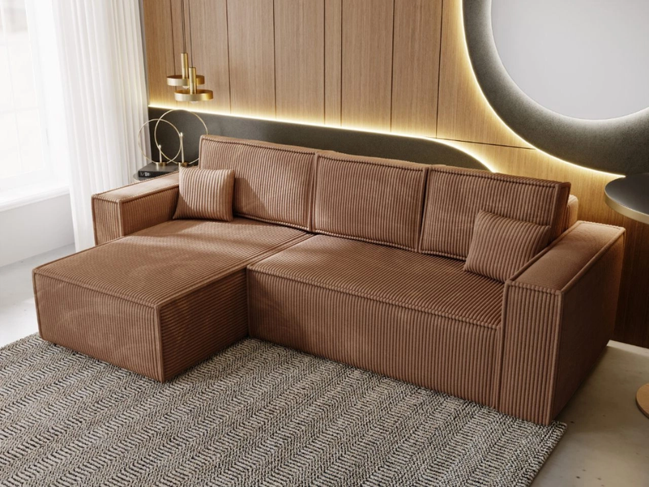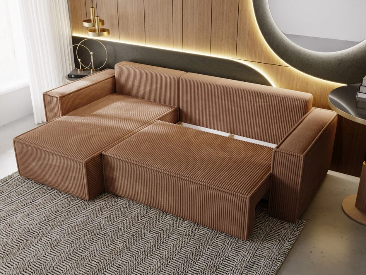 Narożnik L lewy z funkcją spania i pojemnikiem Prato XL Brązowy