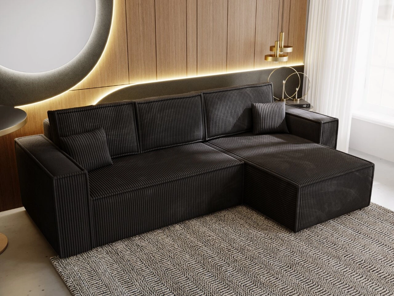 Narożnik L prawy z funkcją spania i pojemnikiem Prato XL Czarny