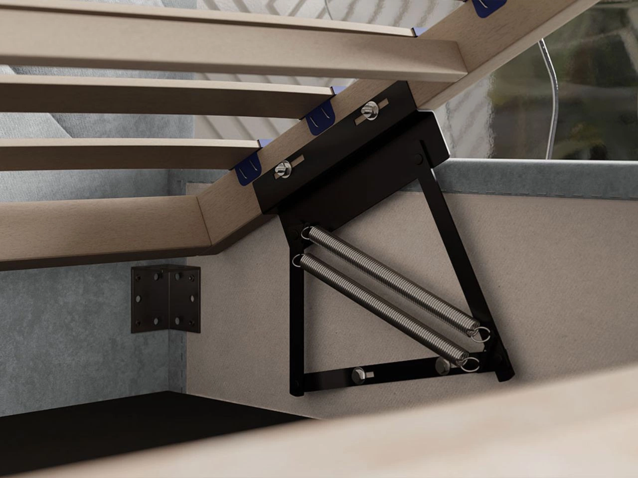 - Wzmocniona rama łóżka z automatami sprężynowymi wspomagającymi otwieranie