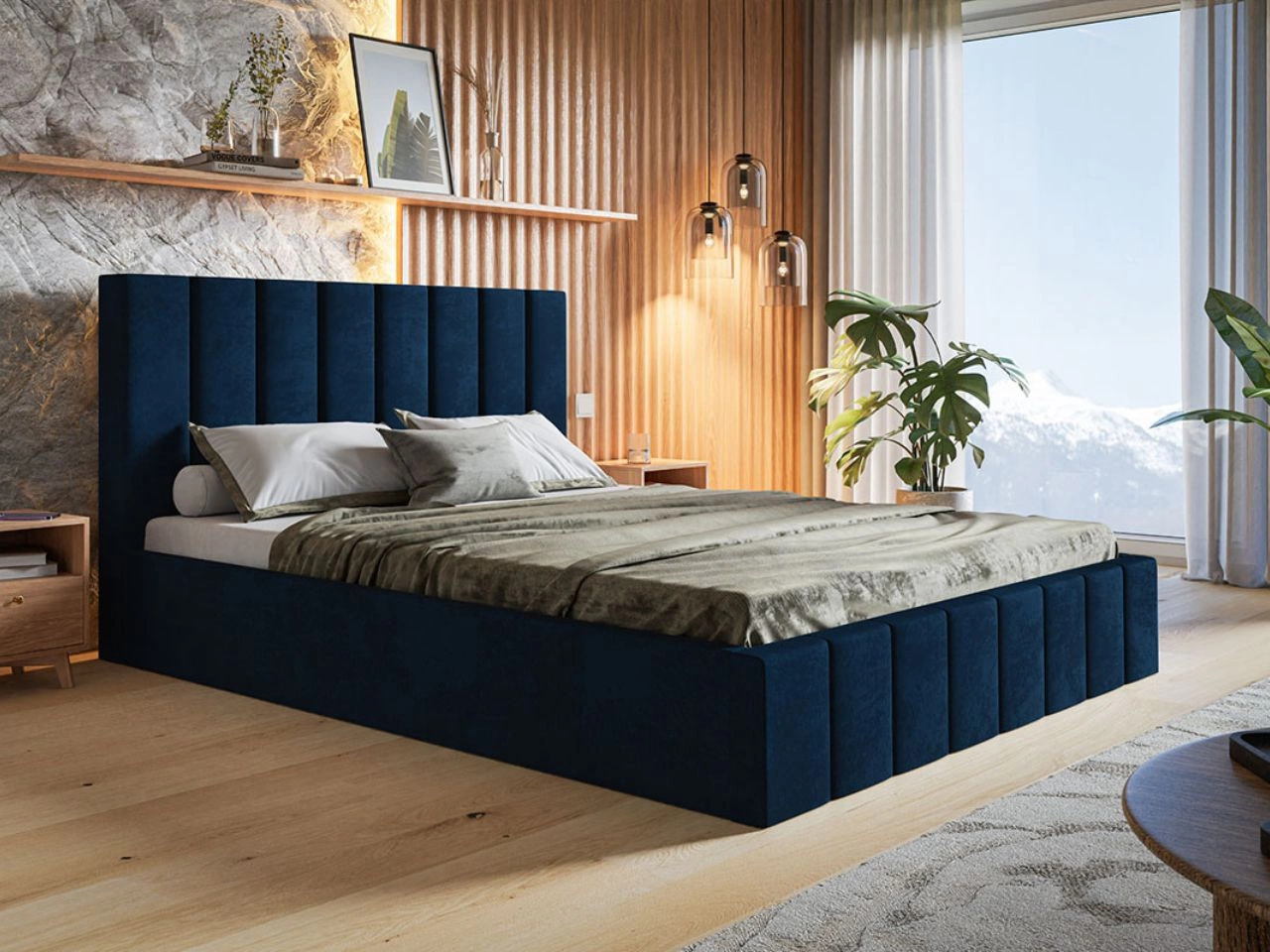 Łóżko tapicerowane z pojemnikiem i stelażem Siena 180x200 granatowy